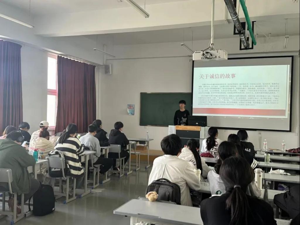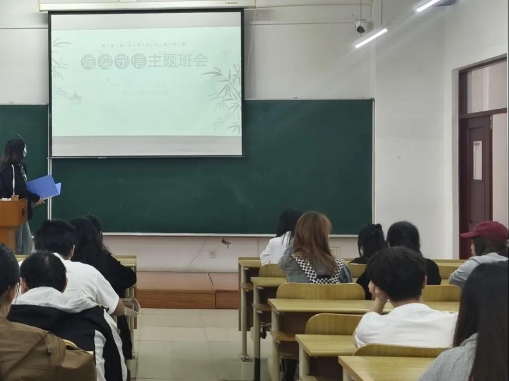 为弘扬中华民族传统美德,扎实推进社会主义核心价值观教育,强化学生诚信意识,营造诚信为本的校园文化氛围。贯彻执行学校2024年诚信文化建设工作部署要求,食品工程学院于2024年5月11日开展“以诚为翼,展食品学子风采”主题班会。以引导青年学生树立正确的人生观和价值观,强化学生诚信意识,弘扬崇尚诚信的校园文化,扩大诚信教育覆盖面。