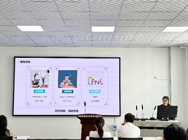 张璨同学毕业后成功进入哈尔滨市道外区市场监督管理局工作。在分享会上,他详细介绍了自己在求职过程中的准备和面试经验。他分享了自己在备考过程中的学习方法和时间管理技巧。张璨同学还特别提到了在面试中如何展示自己的专业能力和综合素质,以及如何应对突发问题。他的分享让在场的研究生们对此类考试有了更深入的了解,也为有意向进入政府部门工作的同学提供了宝贵的建议。
