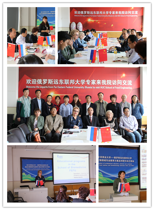 23日下午,食品工程学院领导及各教研室、实验室负责人与代表团举行了见面会。石彦国院长致欢迎词,热情欢迎俄罗斯客人的来访。见面会期间 ,Kalenik Tatyana教授介绍了俄罗斯远东联邦大学食品科学与技术系本科生、研究生的教育方案、培养方向和科研情况。刘颖副院长也就哈尔滨商业大学食品学院学科与专业建设、科研方向与研究生培养等方面进行了详细介绍。同时双方在科学、教育和创新领域的合作方面进行了深入地探讨,达成共识。