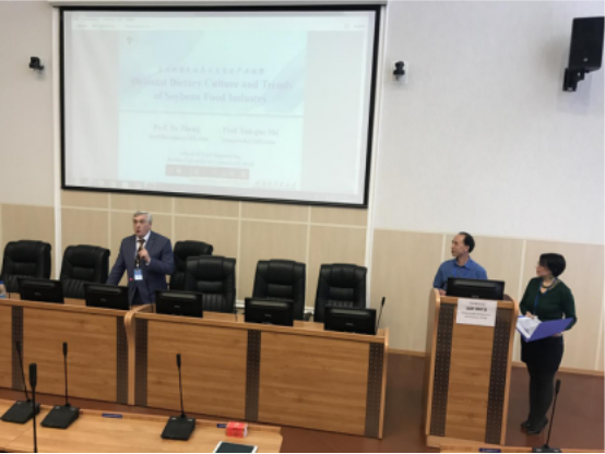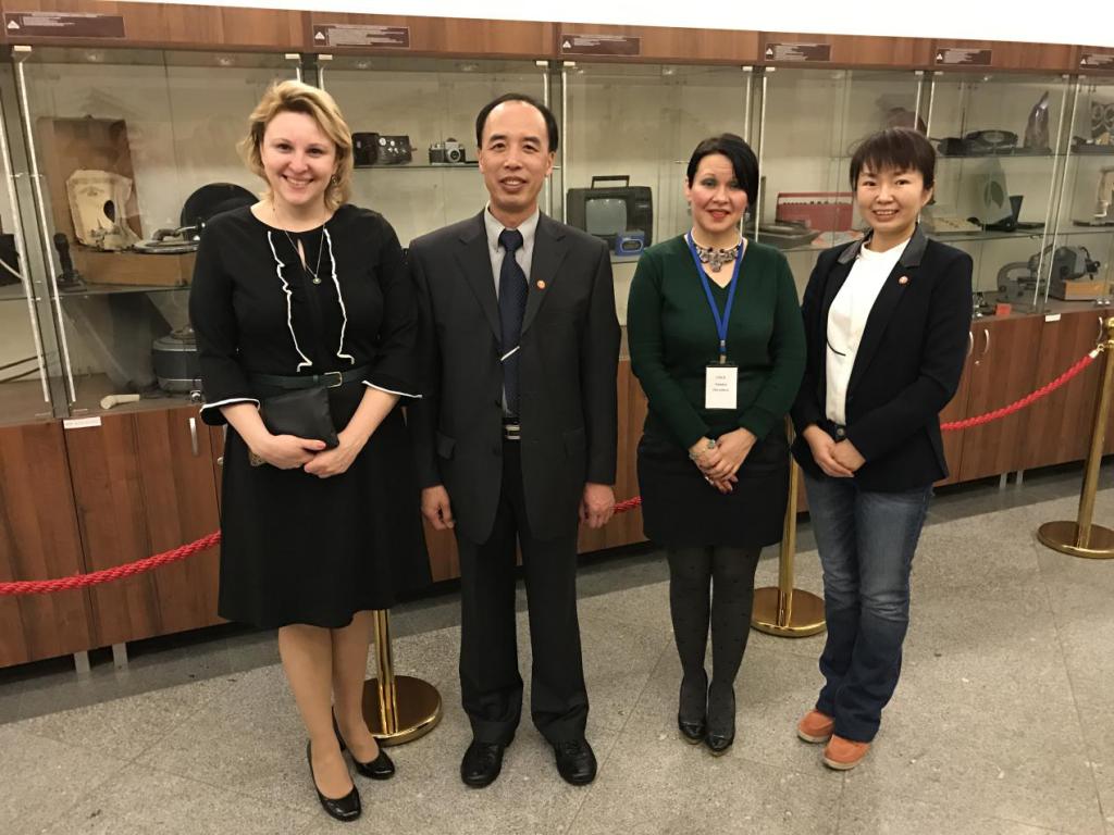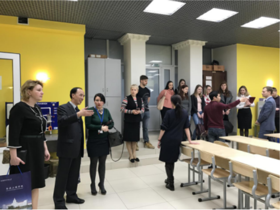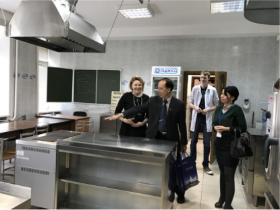 在院长(萨洛维耶娃•维拉•彼得罗夫娜教授)、副院长(拉扎列夫·弗拉基米尔·阿列克萨尼特洛维奇教授)、食品系主任(秋沽诺娃·欧里咖·维克达罗夫娜教授)、翻译(扎维亚洛娃·娜塔莉亚·阿列克谢耶夫娜副教授)的陪同下,石彦国教授与张娜教授参观了学院的实验室、学校的博物馆,并同部分教师进行了座谈交流。