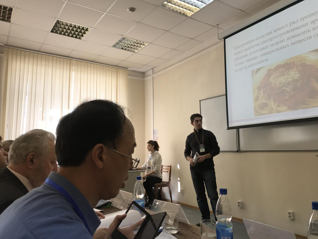 4月17日参加了第九届欧洲经济论坛的开幕式。4月18日,石彦国教授做了“东方饮食文化与大豆食品产业趋势”的学术报告,张娜教授对哈尔滨商业大学食品工程学院进行了介绍。4月18日两位教授作为评委参加了俄罗斯学生创新竞赛的现场评审工作;并代表评委对参赛学生颁发了证书。期间,石彦国教授还接受了俄罗斯乌拉尔电视台的采访,介绍了中国饮食文化的博大精深,丰富健康的中国传统食品。