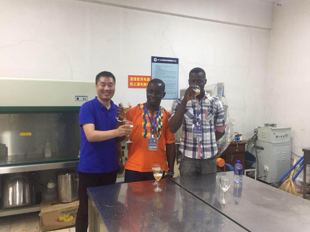 学员在食品工程学院实验室进行了1个多小时的参观考察,对食品学院的仪器设备以及学院开展的大豆、稻米等粮油食品加工、生物催化与食品添加剂创制、特色饮品与肉制品等研究领域产生了浓厚的兴趣,与我院教师进行了深入的探讨和交流,品尝了学院研发的果味啤酒。
