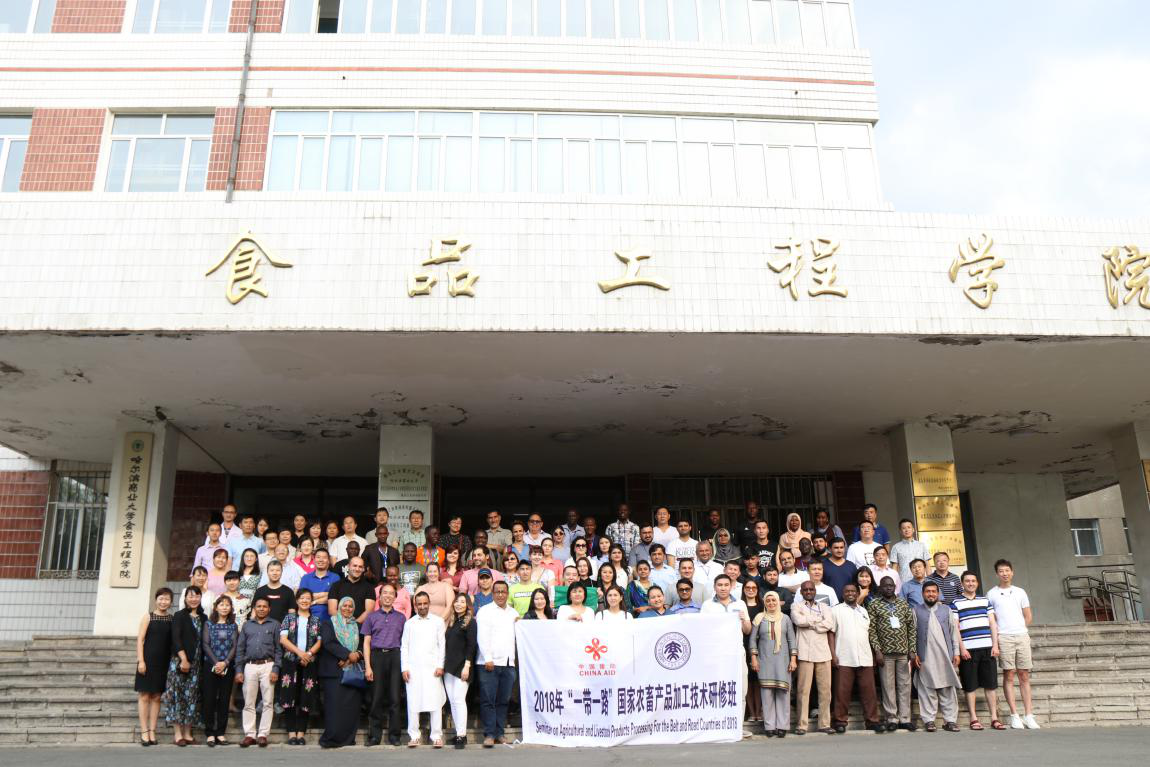2018年“一带一路”国家农畜产品加工技术研修班,由来自格鲁吉亚,泰国,乌兹别克斯坦,阿富汗,苏丹,南苏丹,赞比亚,南非,尼泊尔,蒙古,哈萨克斯坦,塞拉利昂,墨西哥等国家的66名学者、政府官员组成。我校承办了此次研修培训,食品工程学院11名教师承担了该班的培训课程。