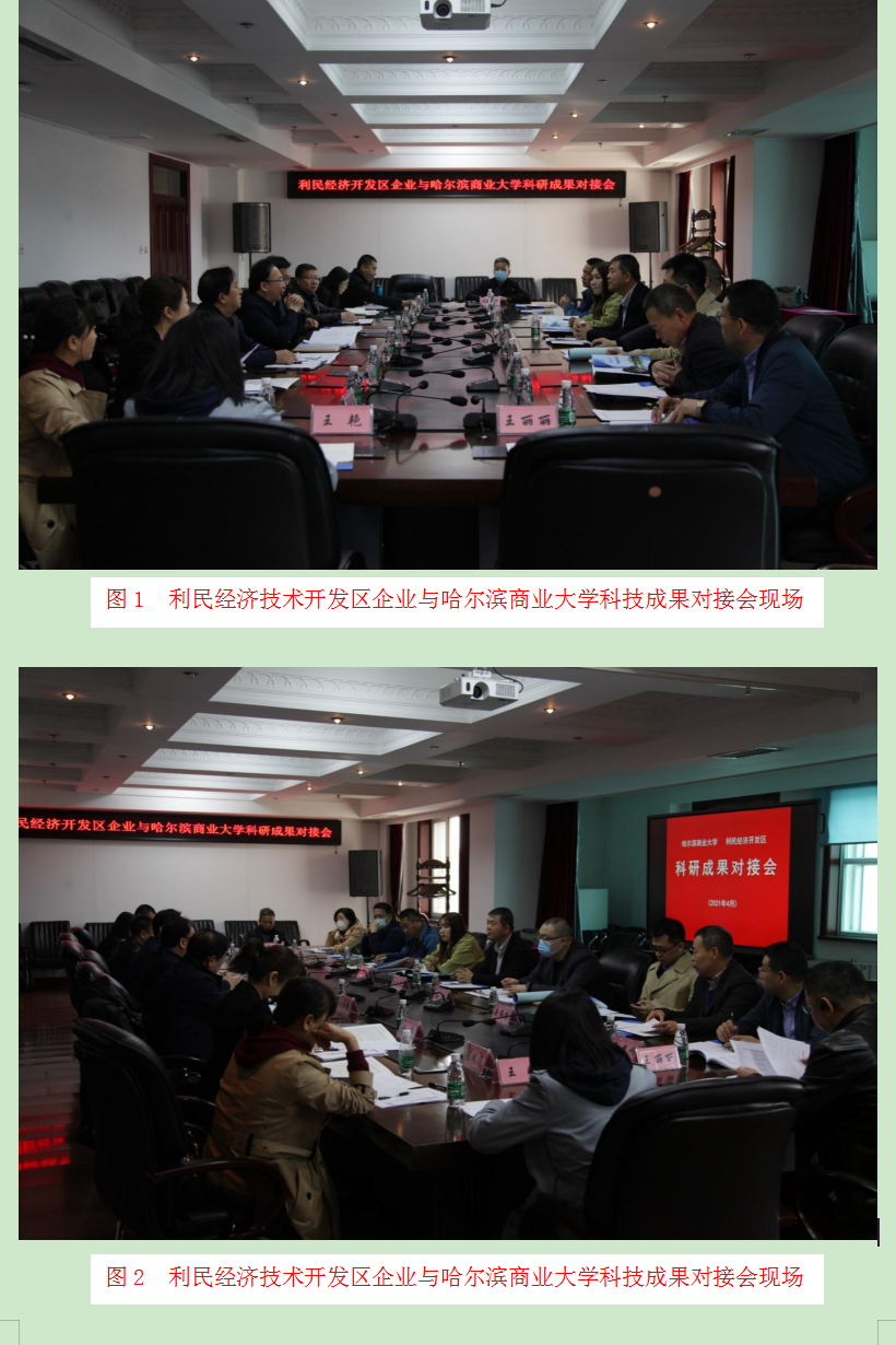 此次科技成果对接会,我校食品领域专家与哈尔滨市利民经济技术开发区六大知名食品企业就新型果蔬饮料研发、糯米粉相关产品深加工研发、调味料油研发、工业大麻啤酒研发和具有养生效果(降糖、降压等功效)食品研发等方面进行了深入研讨和对接。会后企业家走访了食品工程学院。