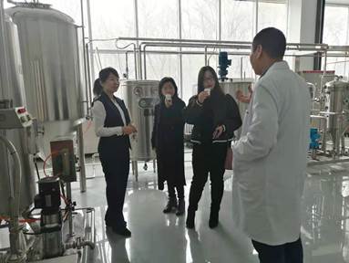 张娜副院长和范洪臣博士陪同宏胜集团恒枫食品科技公司代表参观了实验室、中试生产线和部分研发成果。范洪臣博士对鲜酿啤酒技术的优势进行了介绍,并与企业产品技术负责人龙丹就啤酒品质控制方面的相关问题进行了交流。团委副书记张丽丽博士介绍了我院学生毕业去向、从事的岗位和企业招聘及用人单位对学生工作表现的反馈情况。