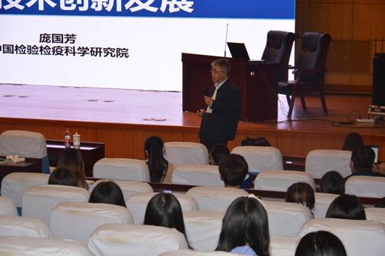 近日,中国工程院院士、中国检验检疫科学研究院庞国芳研究员,中国农业大学江正强教授和中国检验检疫科学研究院常巧英副研究员莅临我校交流指导。庞国芳院士作题为“信息化引领食品安全农药残留检测技术创新发展”的学术报告。我校校长郑秋鹛出席报告会,食品工程学院院长马永强、食品工程学院副院长张娜以及我校近 300名师生参加报告会。