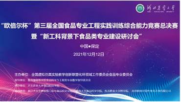 12月11日至13日,由教育部高等学校食品科学与工程类专业教学指导委员会和全国食品专业工程实践训练综合能力竞赛组委会举办“欧倍尔杯”第三届全国食品专业工程实践训练综合能力竞赛(总决赛)在河北农业大学隆重举行。我校食品工程学院教师遇世友、吕铭守带领19级食品科学与工程专业王馨曼、宁鑫鑫、刘硕三位同学参赛。经过一天的激烈角逐,我校代表队伍荣获二等奖。