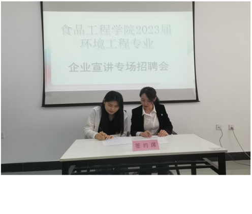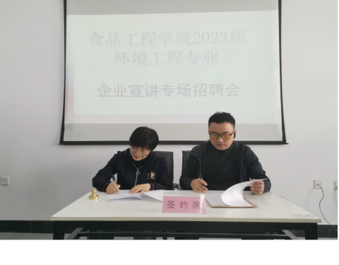 食品工程学院与江苏恒湾环保科技有限公司、黑龙江全测检验有限公司、哈尔滨驰文环保技术服务有限公司、山东日照海川水处理设备有限公司、黑龙江凌霄环境监测有限公司、黑龙江崇杰环保工程有限公司等10家企业签订实习基地协议书。学生现场签约10人,意向签约3人。目前2023届环境工程专业毕业生就业率已接近70%。