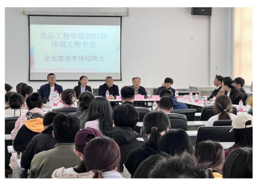 2023年5月17日上午,在食品工程学院会议室举办环境工程专业毕业生专场招聘会。学院邀请省内外21家环保企业,带来了100余个岗位需求。食品工程学院党委书记王诤、党委副书记石亚平、副院长李俊生、环境工程专业教研室主任车春波、左金龙教授和辅导员张玥出席会议。