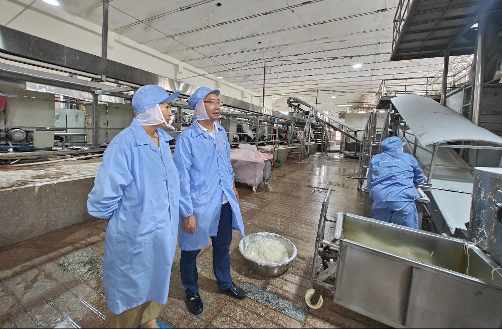 企业负责人文蔚荣向调研团队详细介绍了米粉的制作工艺,从米的选择到加工流程,每一个环节都体现了对品质的严格把控,该公司自成立以来,始终坚持“传统工艺与现代科技相结合”的生产理念,致力于打造高品质、健康的米粉产品。产品采用纯大米制作,不添加任何添加剂,健康安全,采用自有绿色水稻基地原粮、外购新鲜原粮。采用专利技术生产:直条米粉自熟成型新工艺,具有自主知识产权,此工艺可以促进米粉老化回生,赋予米粉爽滑、弹韧性的口感,生产出的米粉酸度低,不伤胃。