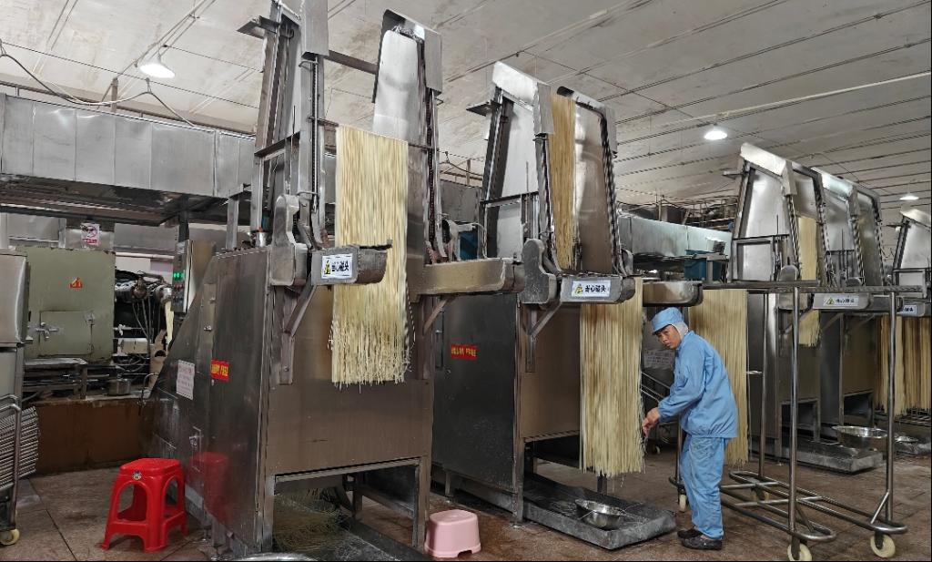 参观过程中,企业负责人谷学权带领调研团队亲身体验了米粉的制作过程,见证了传统工艺的精髓和现代设备的高效结合。