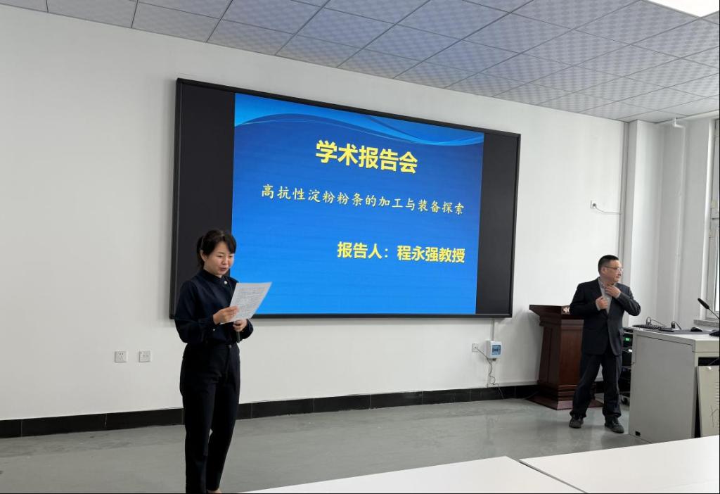 2025年6月3日,哈尔滨商业大学食品工程学院镜湖食品讲坛第二期在食品工程学院324会议室举行,中国农业大学食品科学与营养工程学院程永强教授为我院师生开展题为《高抗性淀粉粉条的加工与装备探索》的学术讲座。会议由张娜院长主持。