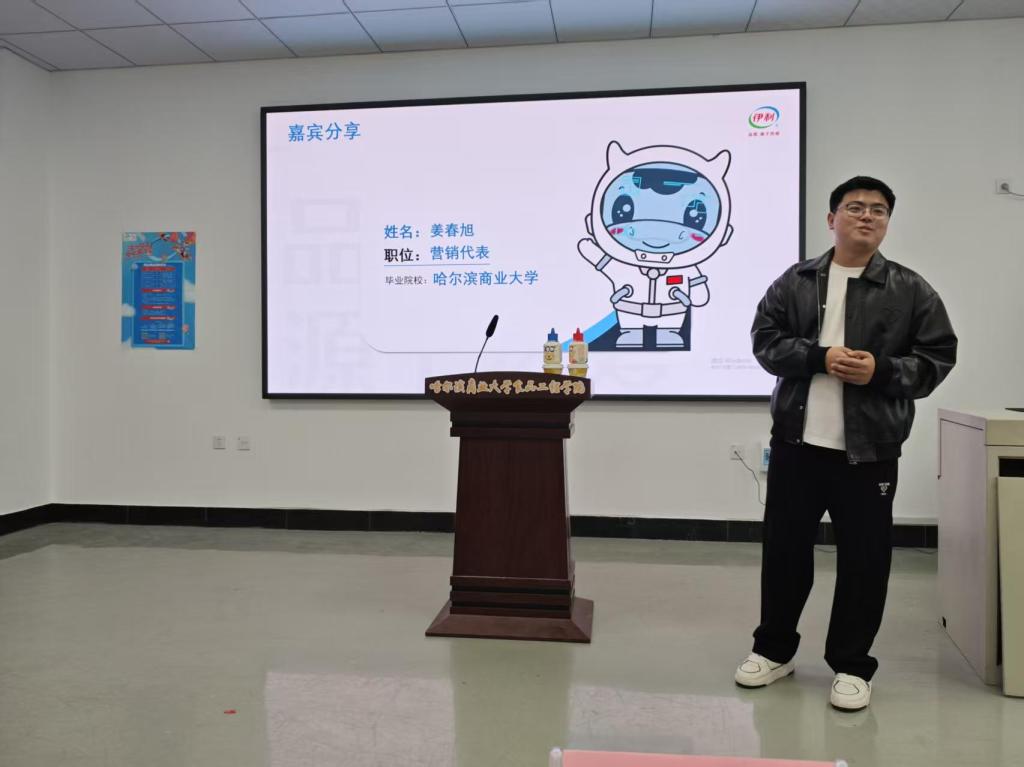 本次讲座还邀请了现任职伊利市场部,我院2024届毕业生姜春旭学长分享求职及工作经验。他结合食品行业的就业趋势与岗位需求,从职业规划、技能提升等维度,为同学们分享了“从校园到职场”的过渡秘籍。他说在伊利的招聘体系中,食品工程专业的同学有超多适配方向!食品工程专业的我们,既能在生产一线做技术骨干,也能在市场前沿做行业先锋。希望学弟学妹们抓住机会,在心仪的岗位上“职”得其所!参会同学纷纷表示,本次讲堂“实用性拉满”,不仅理清了求职思路,更对职场有了具象认知!