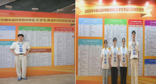 学院秉持“以赛促学、以赛育能”理念,提前统筹参赛培育,通过导师帮扶、专题打磨等举措激发学生创新活力,组织师生携成果参会。在同期举办的2025年CIFST大学生食品科技创新竞赛中,我院学子凭借扎实的专业基础、突出的创新思维和过硬的实践能力,在多项国家级竞赛中脱颖而出,斩获多项荣誉: