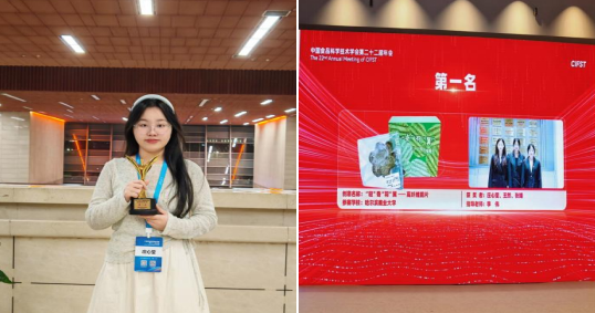 3.张王捷、彭嘉祺团队的《舌尖上的奶香方程式:奶制品搭配的奇妙反应》,在第三届国家乳业技术创新中心创新大赛“趣味科普类”赛道中,以生动短视频传播乳品常识,荣获全国第三名(指导教师:王金荣、石亚平);