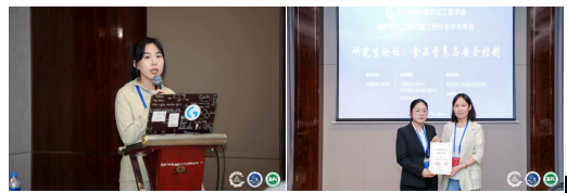 会议设置了1个主论坛、5个专题论坛和3个研究生论坛。主论坛环节,3位院士和5位专家分享了精彩的大会报告。同时,会议期间,与会人员围绕农产品精深加工技术及装备、农产品贮藏保鲜技术及装备、农产品品质检测及安全控制技术、食品营养与功能食品、食品酿造与生物技术五个分主题共开展了119场专题报告,全面交流各团队长期研究成果和最新研究发现。我院博士生代表宋佳琪同学和高嫚同学在年会研究生论坛上进行了主题学术报告,对其研究成果进行了详细介绍。